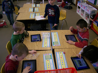 This week I took an opportunity to give our new ipads a try in the classroom. A few weeks ago, our classroom received 4 ipads for use in our classroom. We've been busy playing around with them and getting apps on them that will work with our curriculum. I have tried out a couple activities with kids during guided reading groups. However, this week, I had a group of kids try working independently during literacy center time on the ipads. They were working on reading on RAZ kids, a program familiar to them. It was a fun way to get their hands on this new tool for our classroom. I'm looking forward to playing around with these more with small groups and trying out new programs and apps.